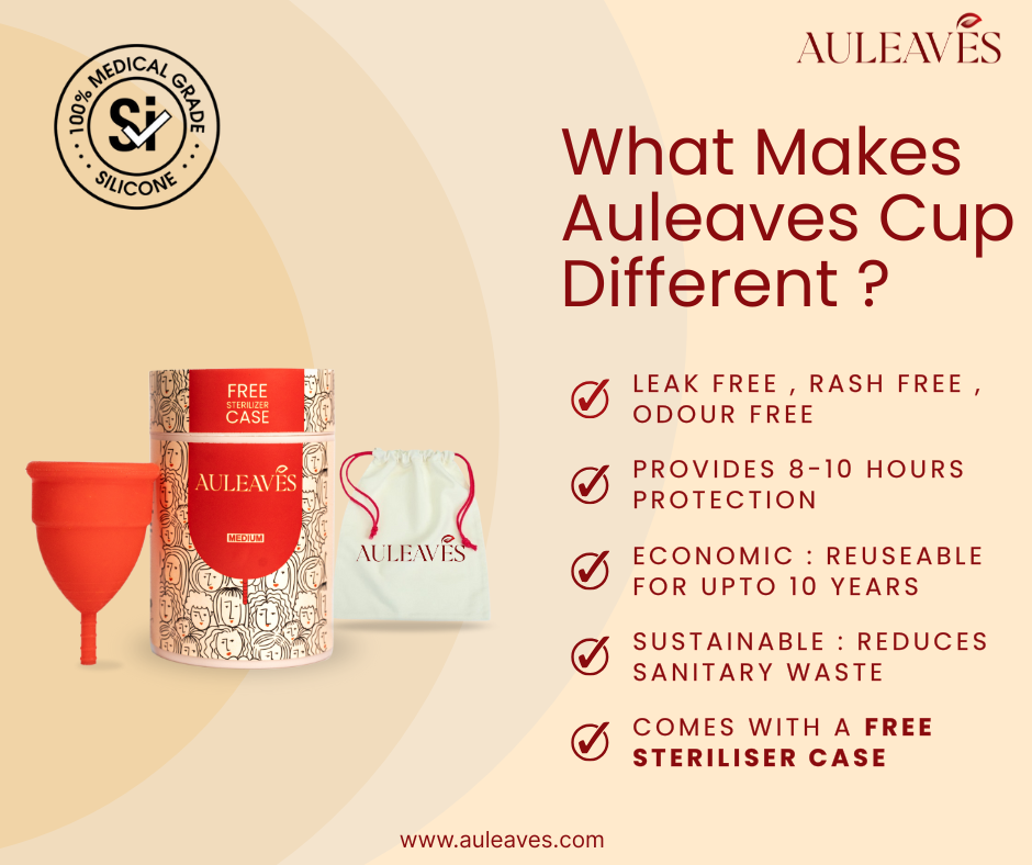 I was so nervous to try a menstrual cup, but Auleaves made it easy! The guide and steriliser case helped a lot. Now I can go through my day comfortably without worrying about leaks!”